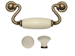 Colección porcelana crema decorado. Tirador, pomo y péndulo